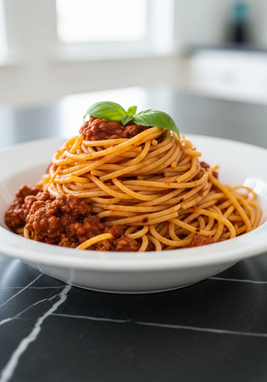 A comforting bowl of tomato-rich sauce clings to al dente spaghetti, speckled with ground beef and fragrant herbs. It’s the kind of dish that fills the kitchen with a warm, home‑cooked aroma, perfect for a family dinner. For a twist, try our meatball sauce version.