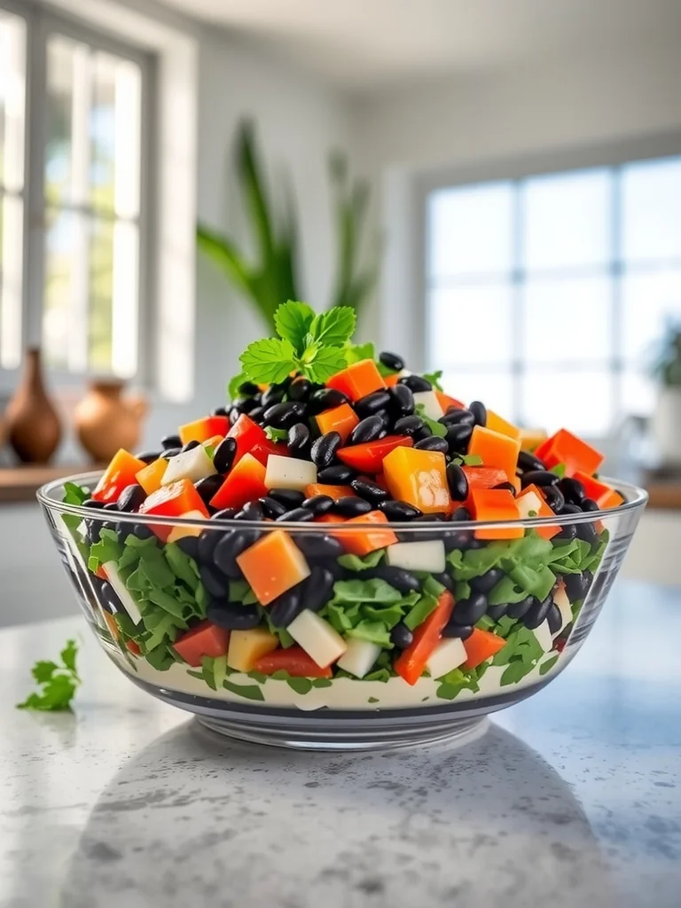 A vibrant black bean salad packed with crisp vegetables, a zesty lime‑cumin dressing, and protein‑rich beans—perfect for a quick, healthy meal any time of day.