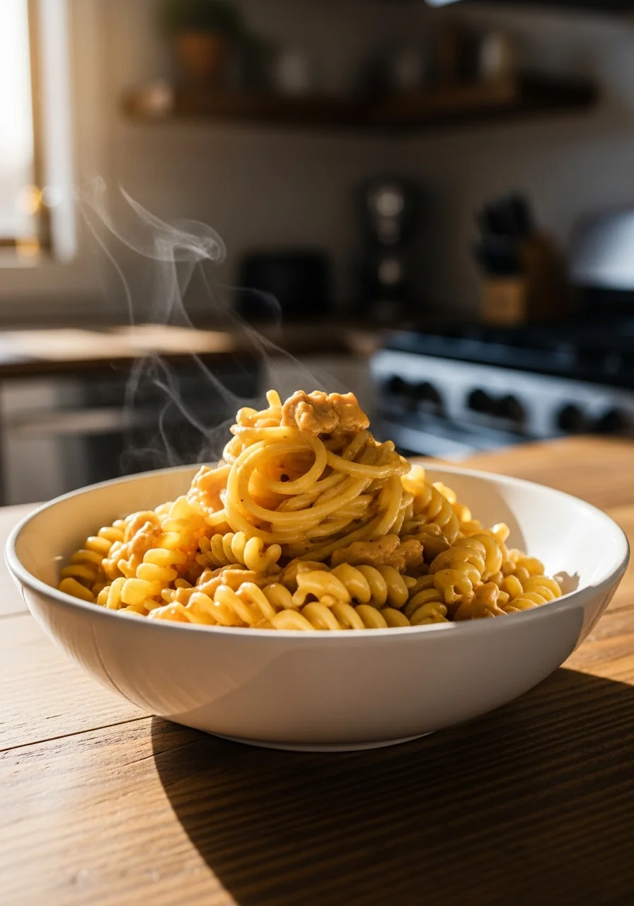 - Pasta (penne or rigatoni): Al dente pasta holds the sauce better; rinse briefly after cooking to keep the starch