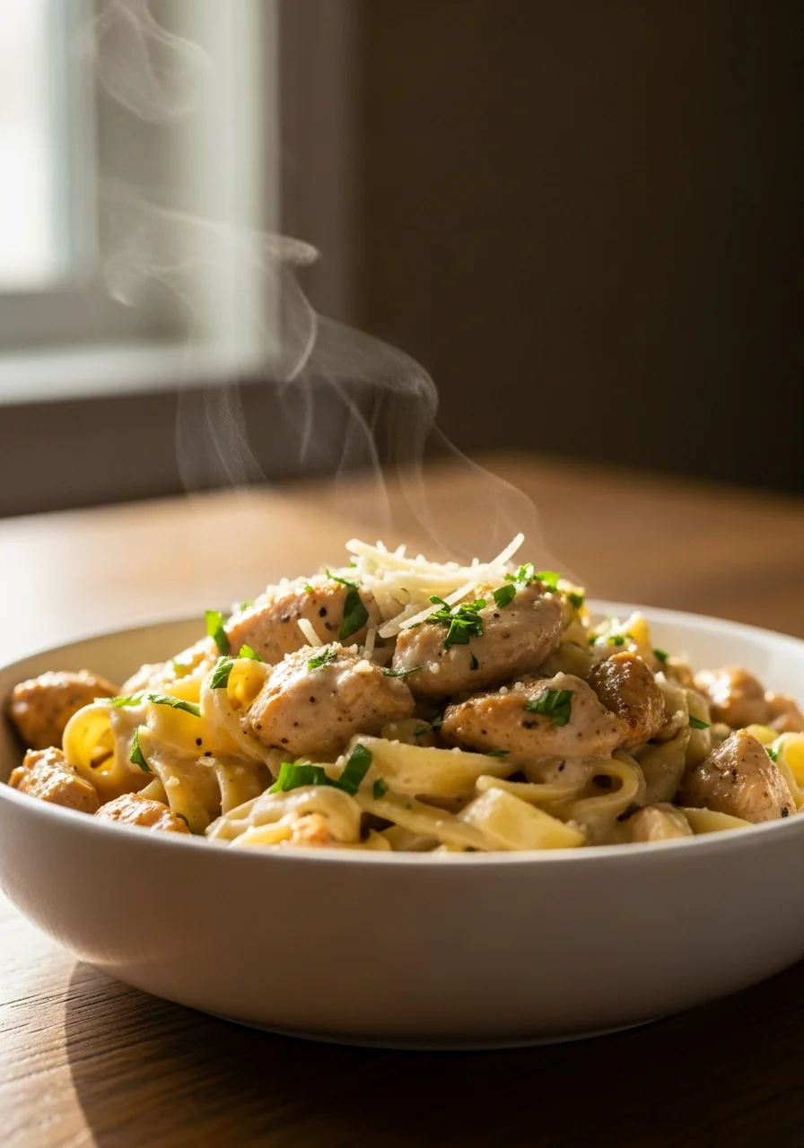 A comforting, creamy garlic parmesan chicken pasta that comes together in under half an hour, perfect for a quick yet satisfying dinner that feels like a warm hug on a plate.