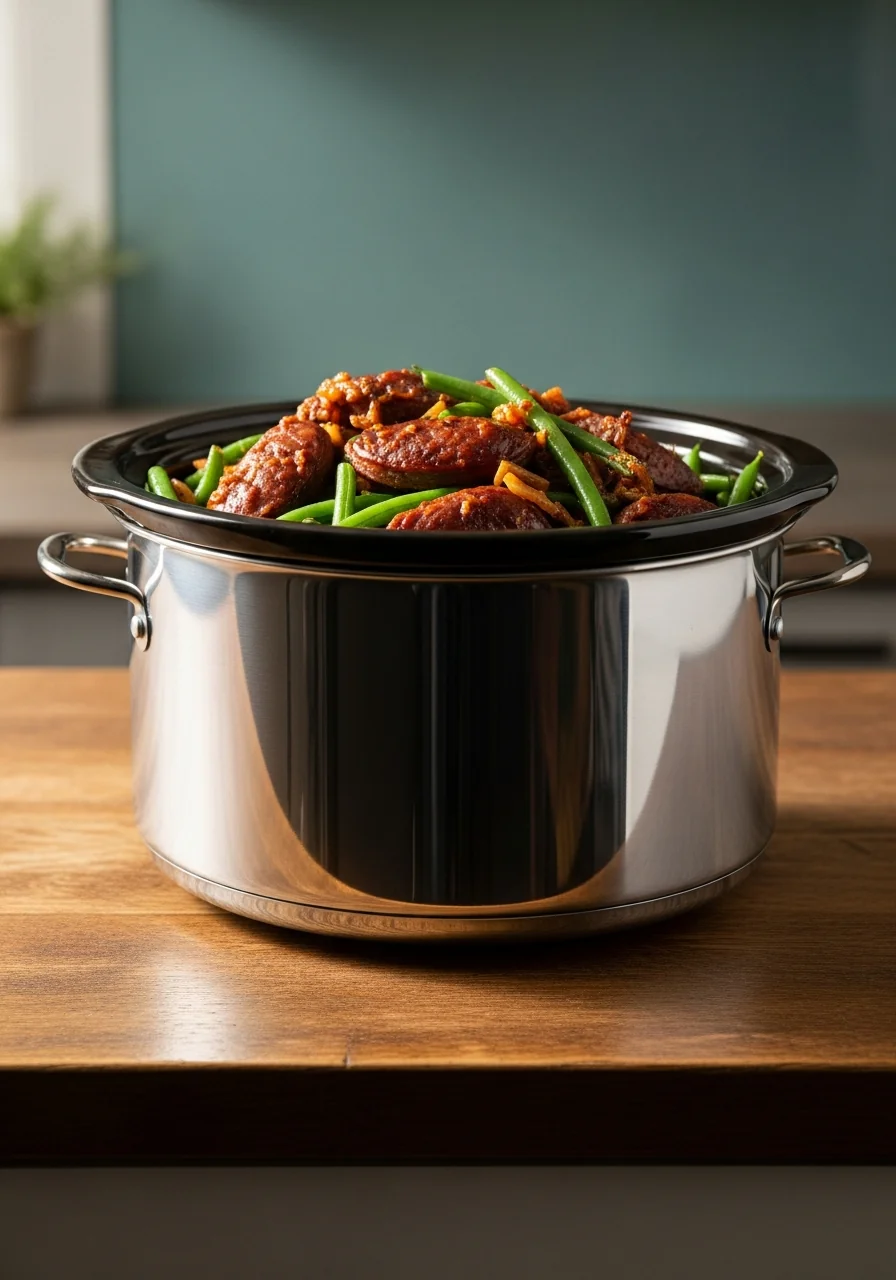 A comforting, slow‑cooked blend of beef sausage, tender green beans, and aromatic herbs that fills the kitchen with a rustic, home‑cooked aroma—perfect for a cozy evening.