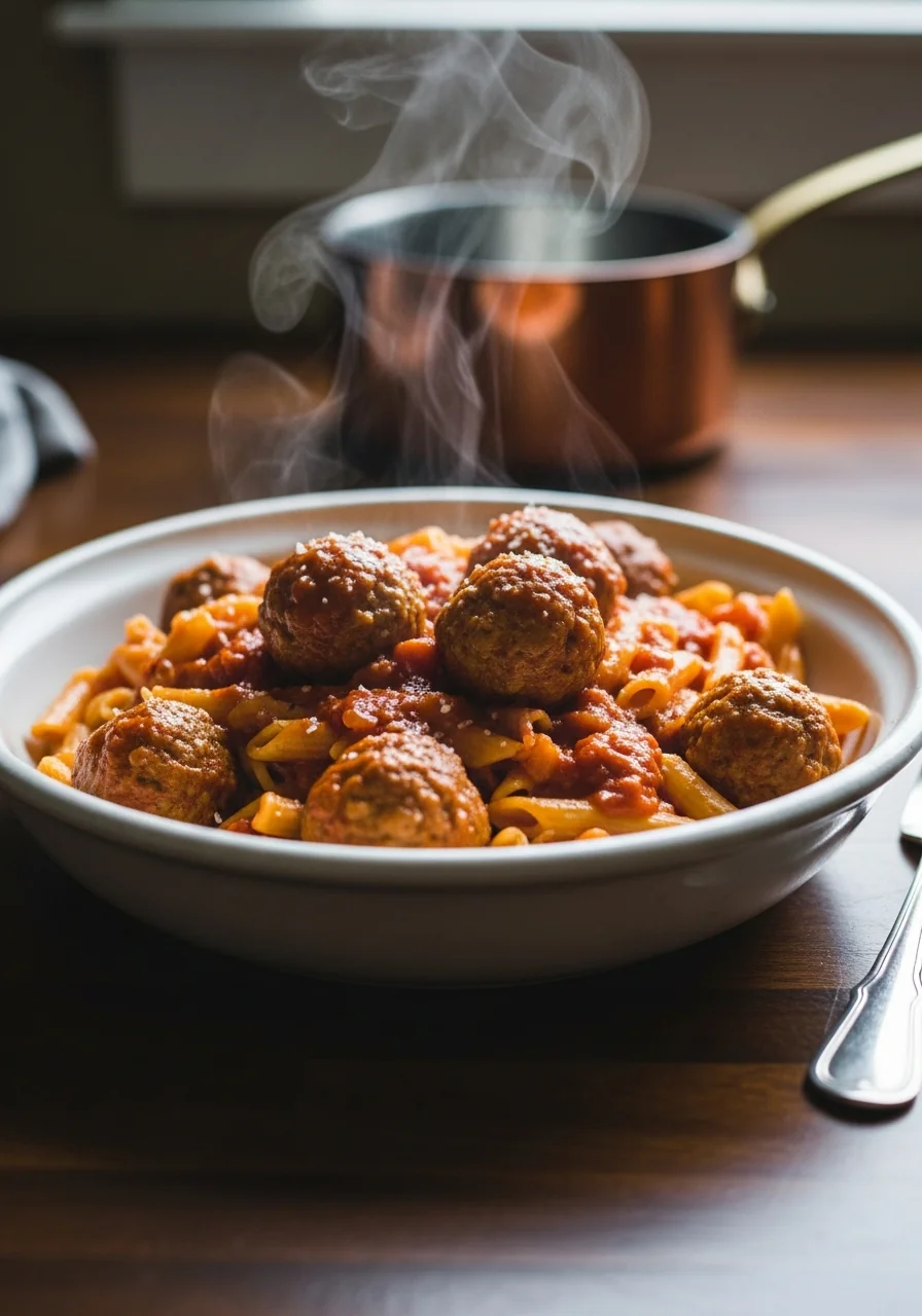 Avoid stirring the pasta too vigorously; you want each piece to stay coated, not broken.,If the sauce thickens too much, add a splash of the reserved pasta cooking water.,For a deeper flavor, brown the meatballs until dark caramelized before adding the sauce.