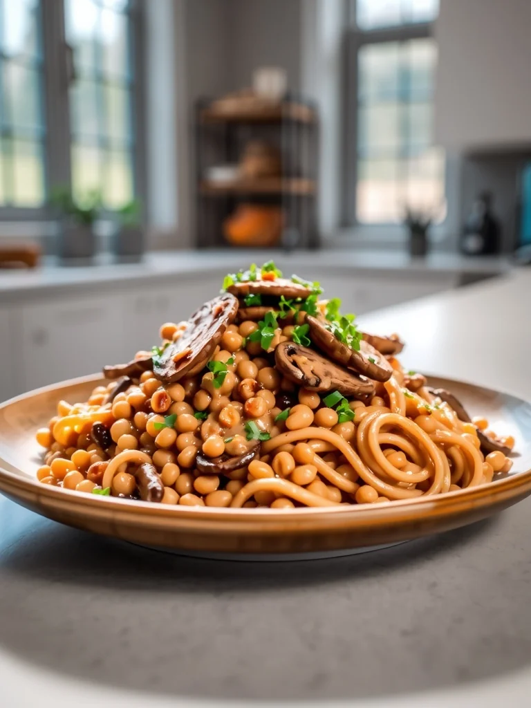 A comforting, creamy lentil and mushroom stroganoff that feels indulgent yet stays light, perfect for a quick weeknight dinner.