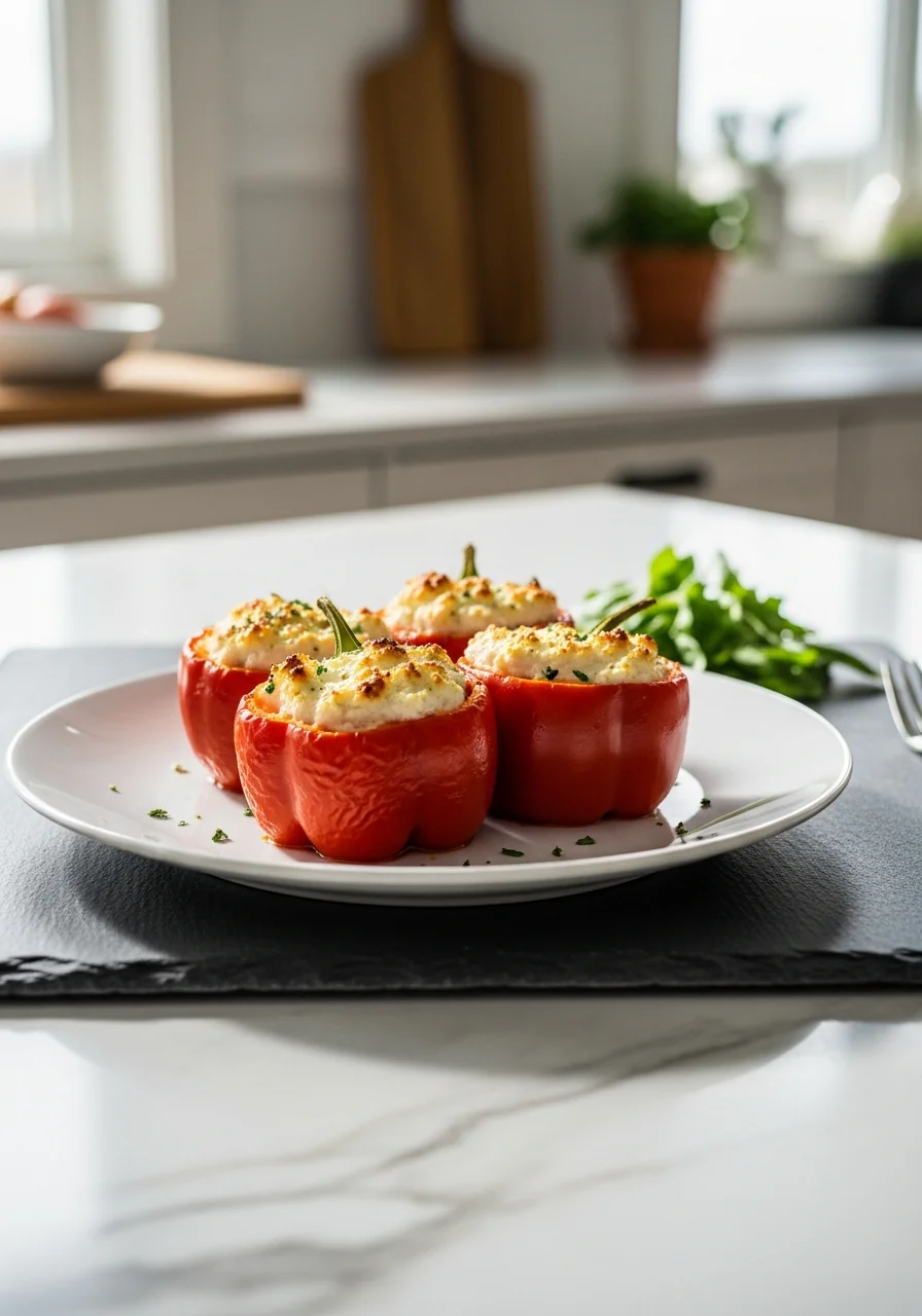 If the peppers look too soft, reduce baking time by a few minutes.,A drizzle of balsamic reduction adds a sweet‑tangy finish.,For a spicy kick, stir in a pinch of red pepper flakes into the filling.