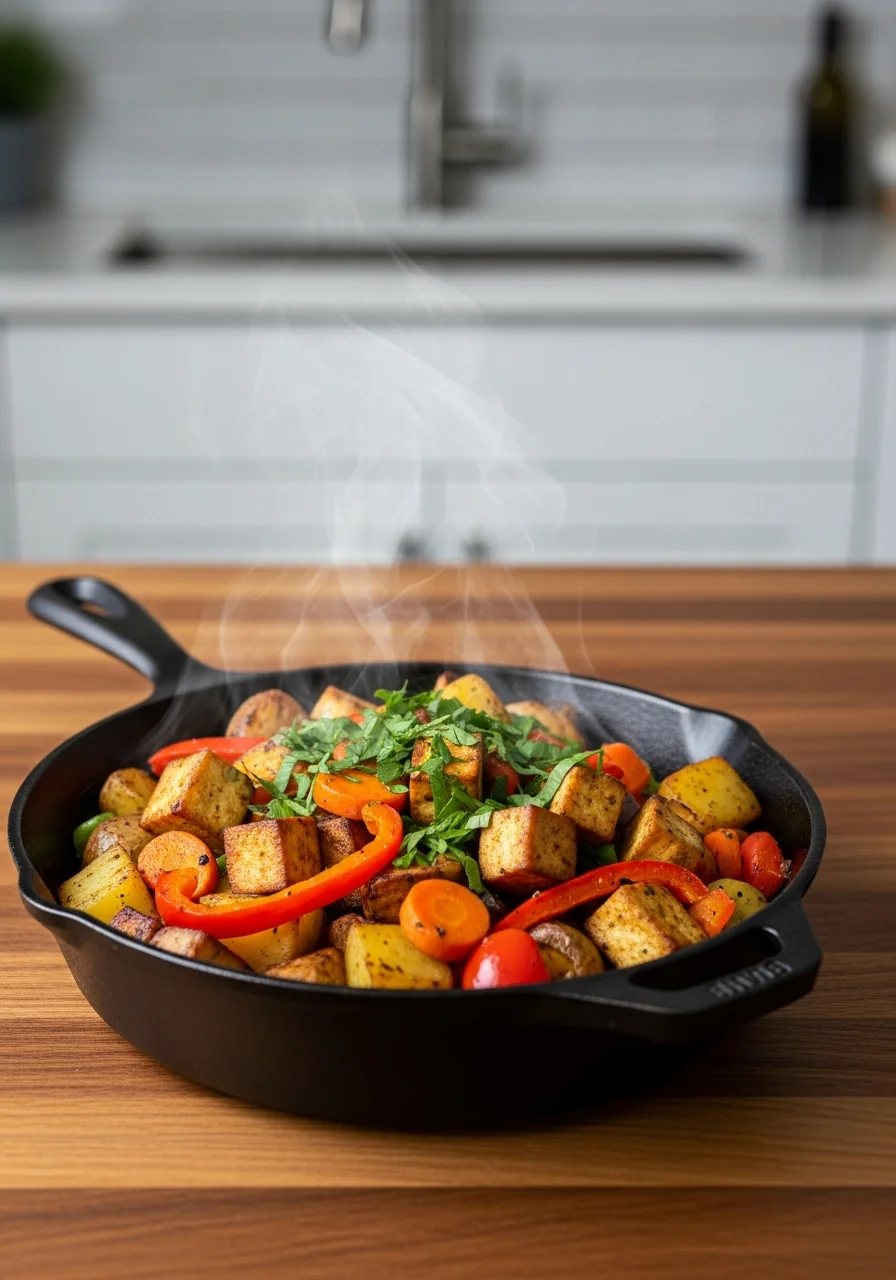Start your day with a savory vegan breakfast hash, packed with crisp veggies, tofu, and spices for a hearty, healthy start.