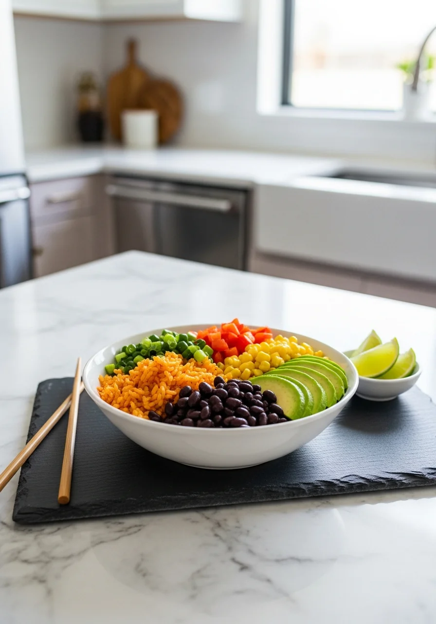 For extra smoky depth, toast the spices a minute before adding them to the rice.,If you prefer a warmer bowl, keep the assembled ingredients in a low oven (200°F) for a few minutes before serving.,Feel free to swap corn for roasted sweet potato cubes for a sweeter note.