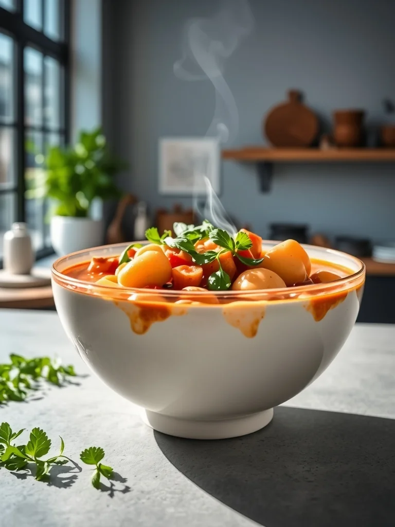 Warm up with a creamy vegan gnocchi soup packed with tender noodles and fresh vegetables – a comforting, plant‑based delight.