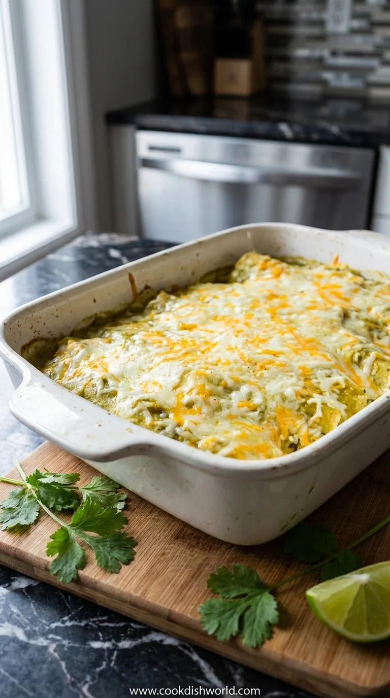 A comforting casserole that brings together tender chicken, roasted green chile, soft corn tortillas, and a creamy cheese blend, perfect for a cozy dinner.